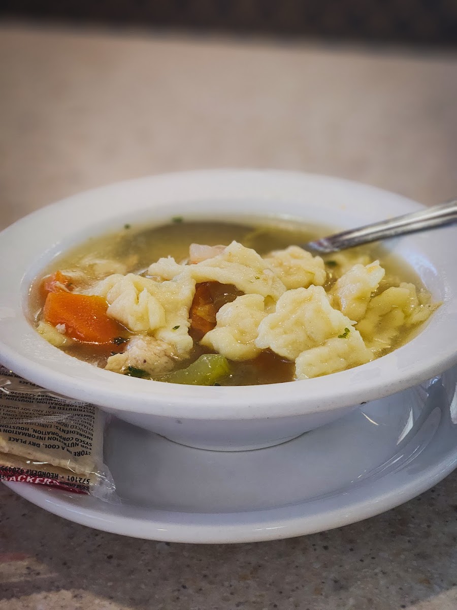 Always delicious food served hot and portions are generous! I have always have friendly, prompt service. The menu offers a wide variety of food choices from breakfast to seafood. I’m not able to eat them for dietary reasons, but my husband loves the homemade soups! And if you like pie, they offer a lovely selection of pies for dessert. Great place to eat!
