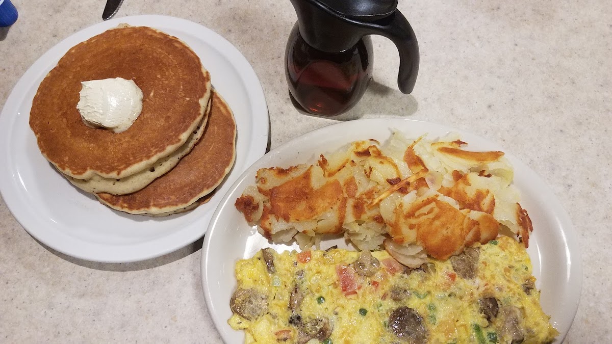 You better be hungry if you order the 2+2+2. The pancakes are huge and delicious, eggs cooked to order and choice of meat. Coffee was good too. Definitely a typical family style restaurant, clean and friendly. I’ll be back next time I’m in the area.